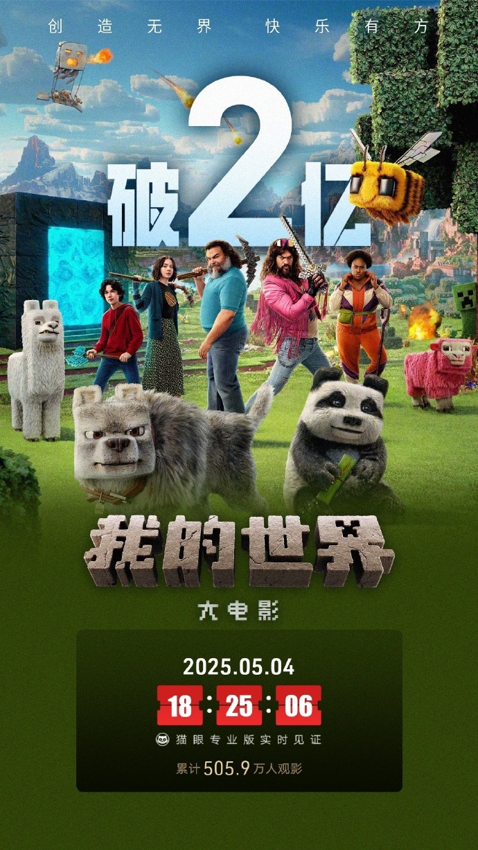 5月4日,据猫眼专业版数据,电影《我的世界大电影》上映31天,总票房突破2亿元。