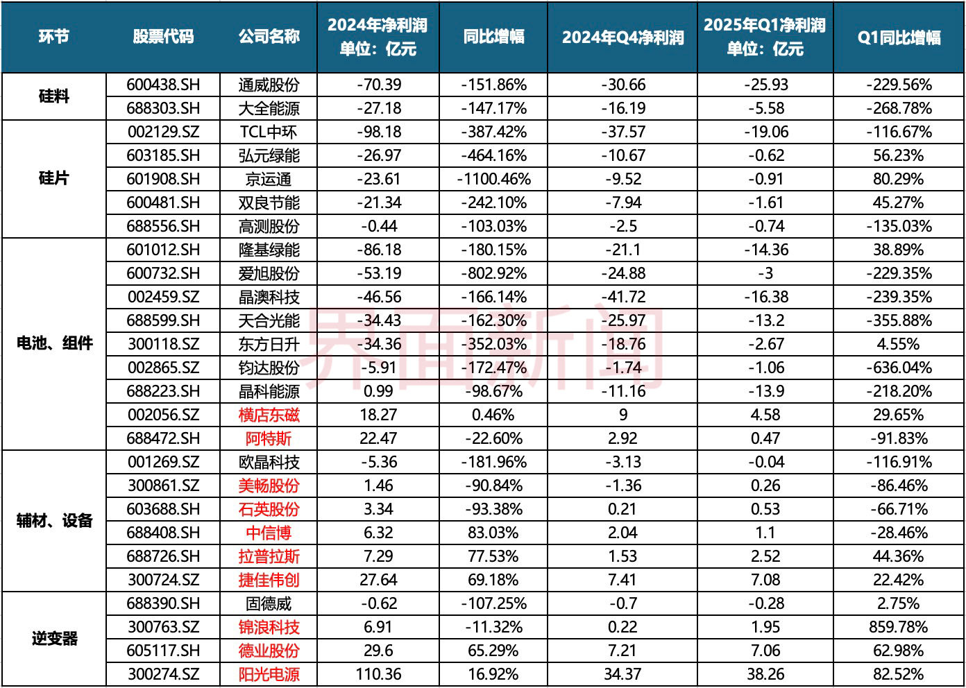 综合看,光伏制造主产业链上的企业多面临亏损,尤其是硅料、硅片环节。