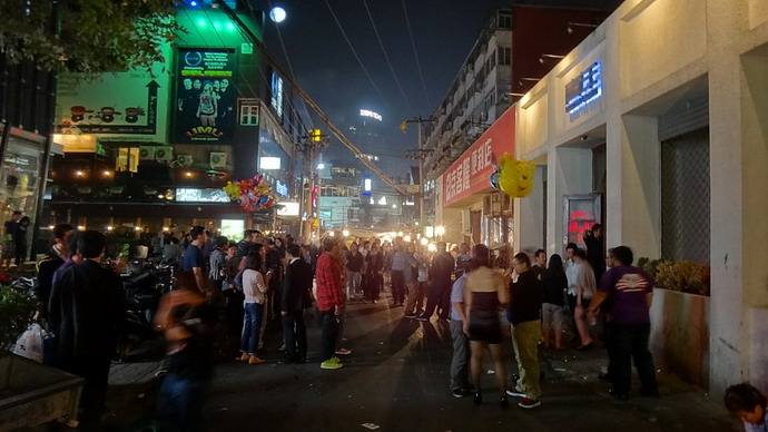 这条街连接了太古里南区和北区,窄窄的街道两边全是各种酒吧、小吃、音像店和香烟摊。