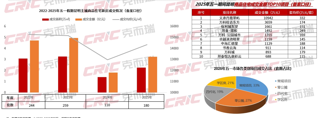总认购455套,比去年五一上涨17%,市场认购整体超越前两年,楼市成交量价齐涨……今年五一小长假昆明楼市交出的成绩单,还不错。