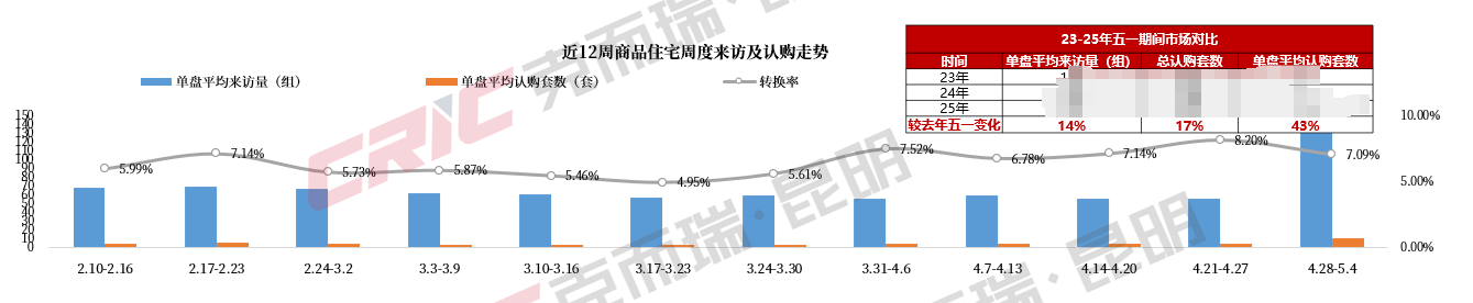 从认购率来看,五一期间平均认购套数10套,总认购套数上涨17%。其中,新规产品的来访热度是传统改善项目的2.3倍,而书包房趁势降价,将转化率提升3-4个百分点。