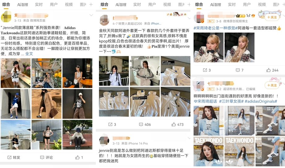 比如阿迪达斯这波业绩回暖的关键爆品SAMBA系列德训鞋,就受益于Jennie的同款穿搭吸引了大量粉丝效仿及二创转发。在明星人气加持和粉丝追捧下,SAMBA系列销量一路走高,有海外分析师估测,2024年SAMBA系列鞋款销售额增长300%至15亿欧元,占公司总营业额的7%。