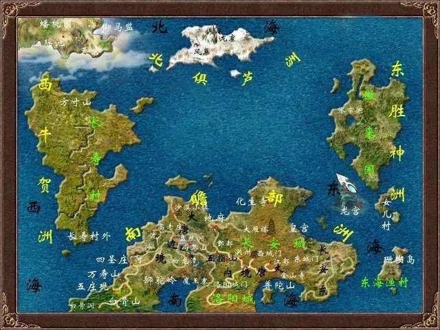 网友根据西游记画出来的四大洲的图,细看东胜神洲的大致形状,像不像是从南瞻部洲分离出去的一块?(看不出来的话就看这个攻略:把东胜神洲顺时针旋转90°,向左移动,能够大幅度和南瞻部洲的皇宫那里重合。)