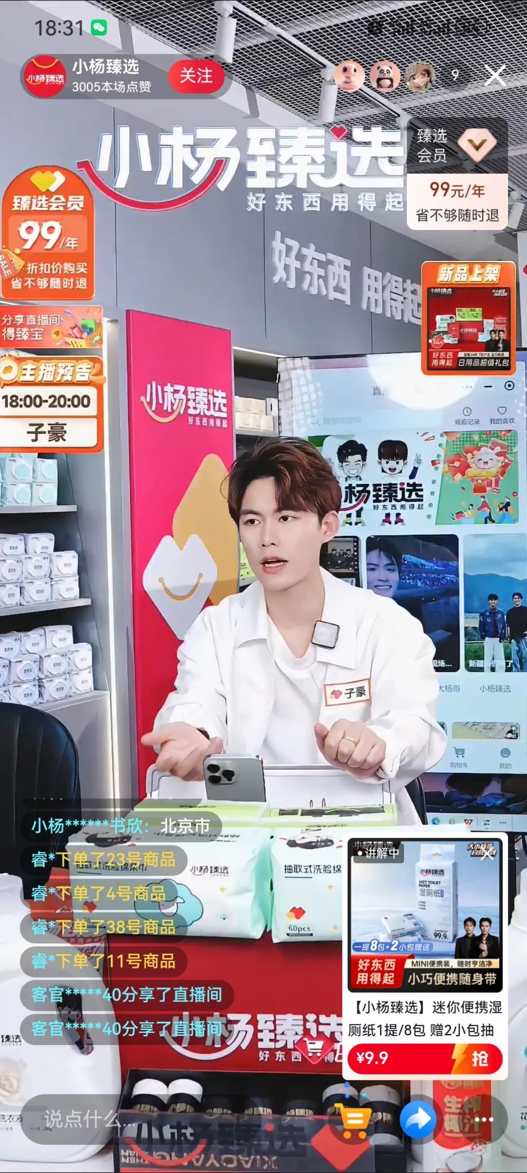 小杨臻选的直播场观也较为惨淡。比如,今天下午6点31分,其正在进行的一场直播,仅有不到10个观众在线。直播中主播也提及到疯狂小杨哥,称“老板(疯狂小杨哥)很喜欢钓鱼……在接下来的短视频中,小杨哥可能会分享他钓鱼的视频”。