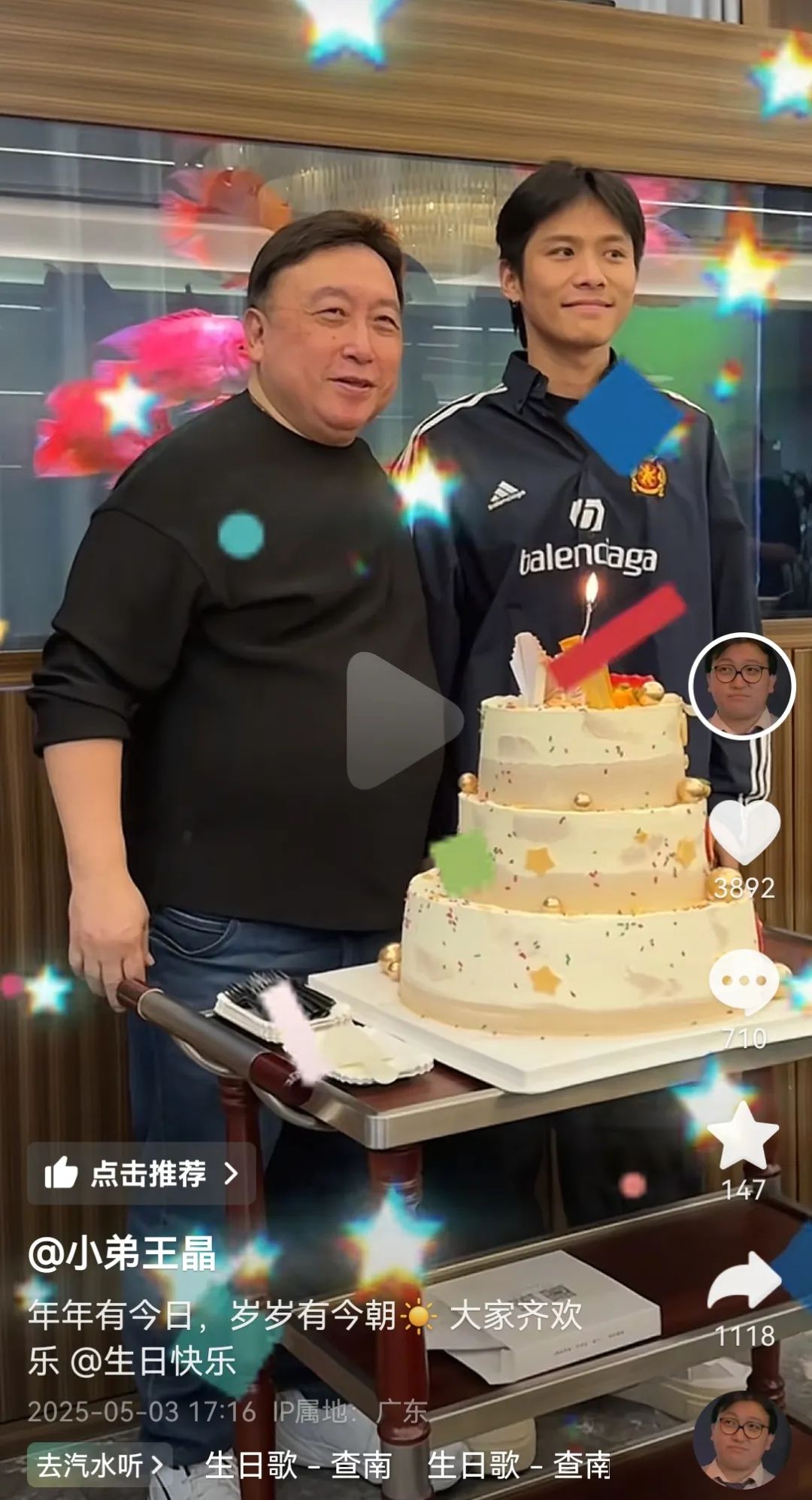 5月3日,中国香港知名导演王晶在其抖音账号“小弟王晶”发布了一条庆生的视频。