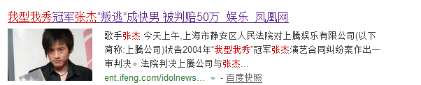 直到2007年,张杰遇到了自己人生的转折点——《快乐男声》。当年4月,张杰瞒着老东家私下参加了《快男》的海选,并直接杀入全国总决赛。这一举动立即惹毛了“上腾娱乐”,公司一纸状书将张杰告上法庭,并要求法院判令其支付违约金人民币50万元。