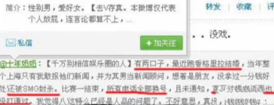 2011年8月6日,张杰与谢娜在“七夕情人节”于微博向媒体公布婚讯,霎时间惊爆娱乐圈。但伴随着祝福声的,还有微博名为“十年奶奶”的吐槽声。他在一篇“千万别相信娱乐圈的人”的微博中写道,“有两口子,最近跑到香格里拉结婚,当时整个上海只有我刚报道他们的新闻,比赛一结束,所有电话号码全换,且未通知。”各种信息都直指当时因“快男”火起来的张杰。
