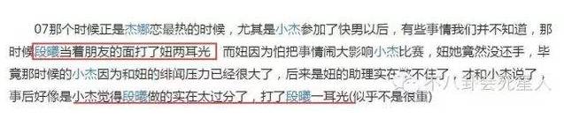 之后有网友称段曦在2007年时,曾当着朋友的面给了谢娜一耳光,而谢娜为了不想影响张杰的比赛,不仅没有还手,反而默默忍受。最后是谢娜的助理实在看不下去了,才告诉了张杰。
