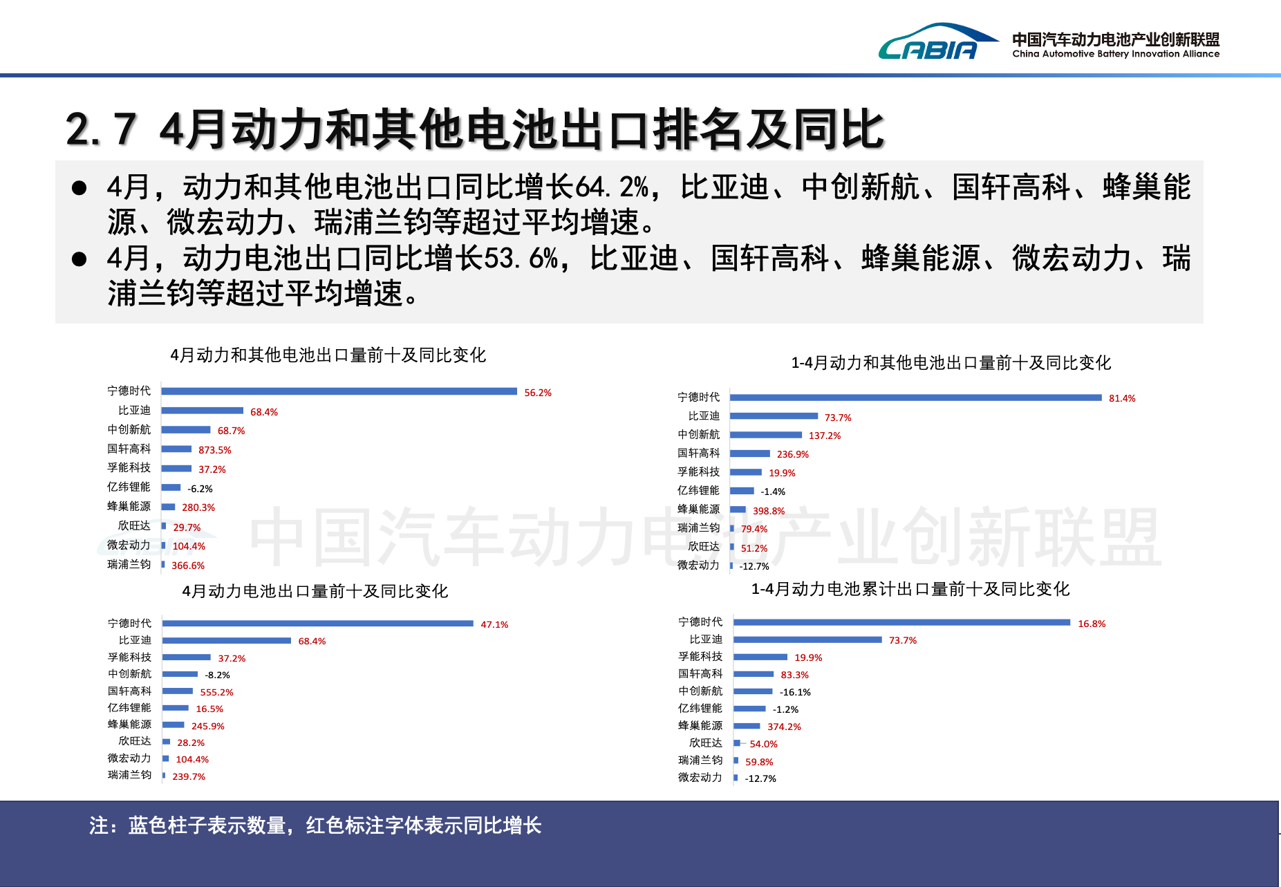 同期,国内动力电池出口同比增长了53.6%,动力和其他电池上月的出口同比增速则达到了64.2%。在出口方面,储能电池的增速也快于动力电池。