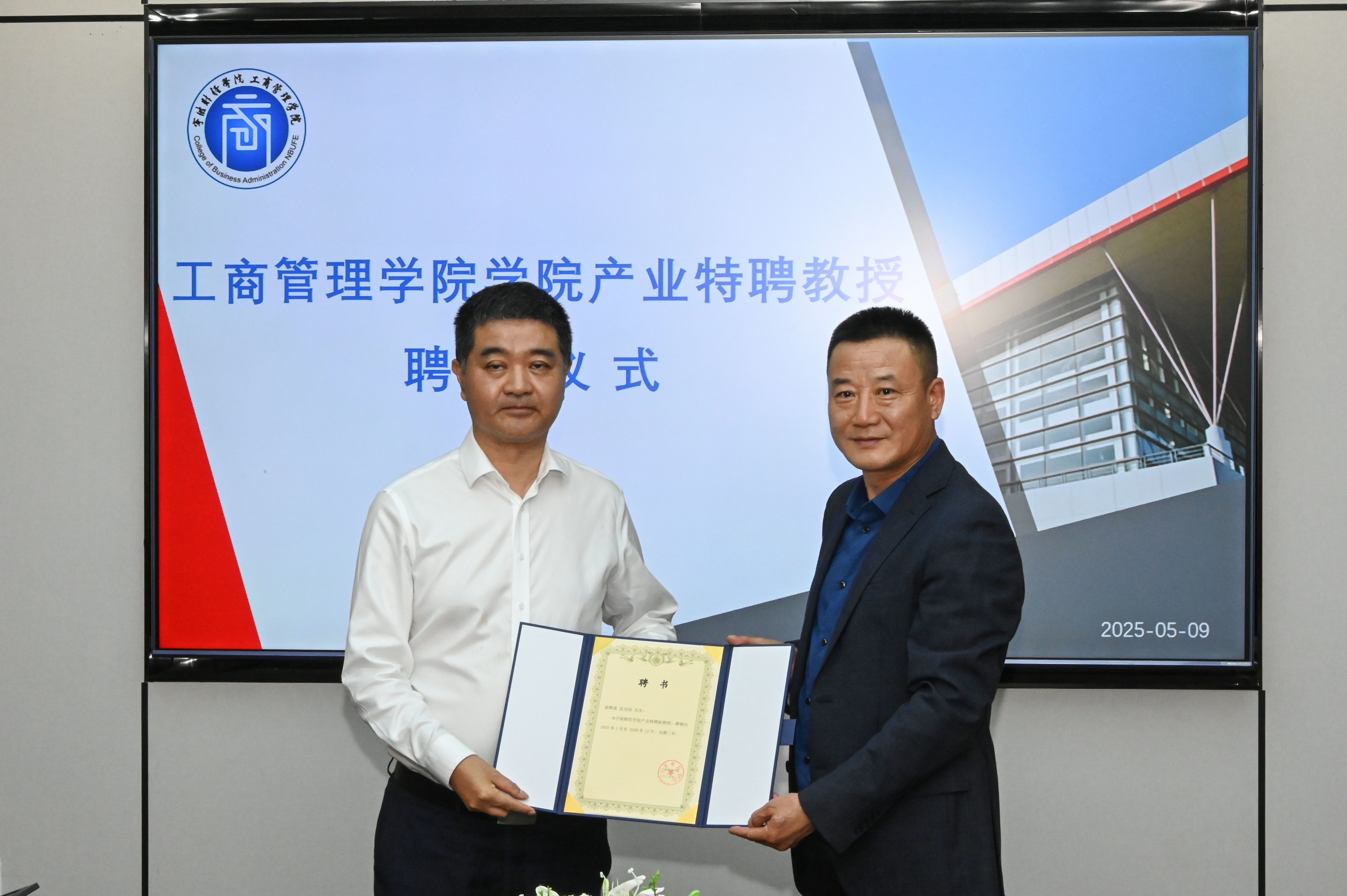 现场,宁波财经学院工商管理学院副院长赓金洲介绍了学院通过省市重点学科与专业建设、示范性实践基地建设、产教融合课程培育、创业学院与国家级众创空间等产教融合积累。宁波财经学院工商管理学院院长赵迎军为恩凯控股有限公司董事长沈功灿、欣捷投资控股集团有限公司副总裁马煜东、宁波时科新材料科技有限公司总经理殷石、费森尤思卡比华瑞制药有限公司华东区域市场项目负责人焦名明等颁发产业特聘教授聘书,希望通过院企的双向奔赴,加强融合深度、加速融合广度、加油融合热度,赋能宁波产业发展和人才需求。