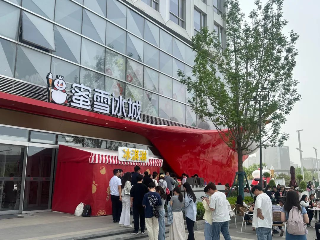 从郑州东站下来,步行大约五分钟,隔着马路就能看见这个被各地网友称为新顶流的打卡点——蜜雪全球总部旗舰店。