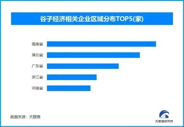 天眼查数据也显示,截至目前我国现存在业、存续状态的谷子经济相关企业超669万家。从区域分布来看,河南位列第五,仅次于浙江和广东。