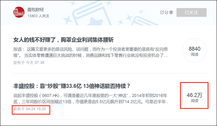 很可惜——当时那篇文章没有引起投资者足够的重视。4月25日,做空事件发生后,面包财经的预警文章才得到足够的重视,短短几个小时之内在某投资社区的阅读量就超过46万次——但为时已晚。