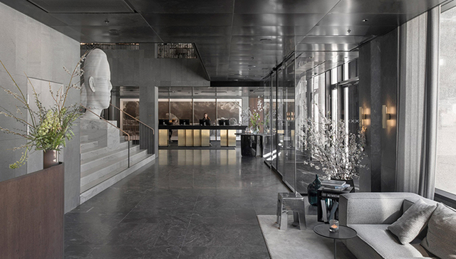 设计师希望通过人性化的设计风格,将精致奢华的氛围带入到野兽派风格建筑上,并将它们转变为一家大都会酒店的当代版。尽管这些室内设计理念往往与野兽派风格不沾边。