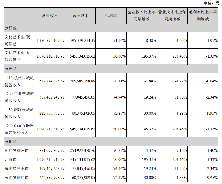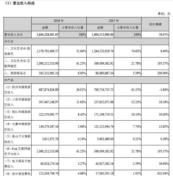 从2016年年报来看,宋城演艺的业绩主要体现在以下几方面: