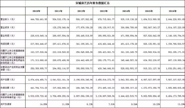 在良好的现金流支撑下,宋城截止2016年底拥有10亿的现金,仅有4亿长期借款,资产负债率13.29%。