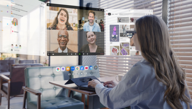 该AR眼镜可为用户提供134英寸的“空间屏幕”,显示界面的远近距离与画面尺寸均可调节,支持至多6屏的多窗口同台显示。