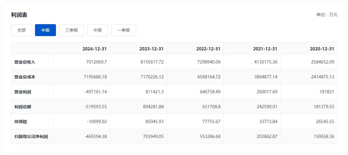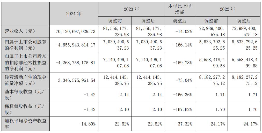 2024年,晶澳科技实现营业收入701.21亿元,同比下降14.02%;归属净利润亏损46.56亿元,同比下降166.14%。
