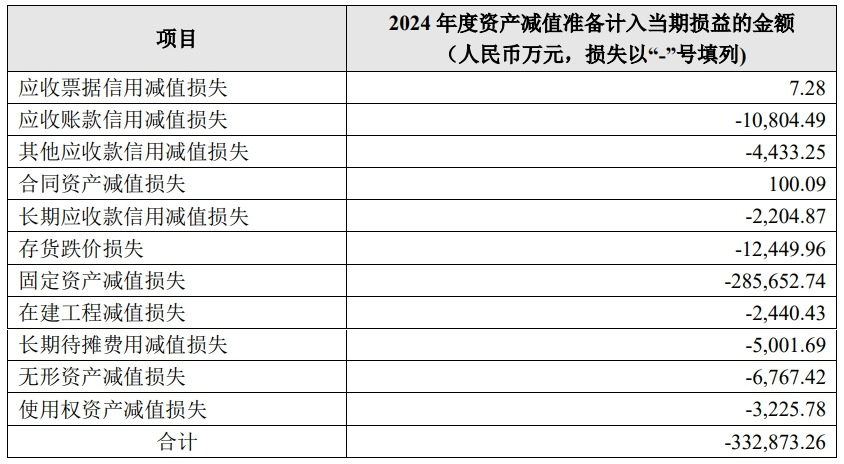 公司2024年度计提的各项资产减值准备金额为33.29亿元,占2024年度经审计归属净亏损的比例71.49%,本次计提资产减值准备共计减少公司2024年度利润总额33.29亿元。