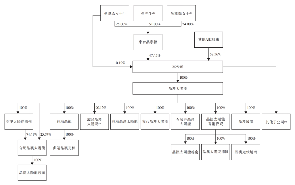 公司还公布了控股情况,公司由东台市晶泰福科技有限公司(以下简称“东台晶泰福”)持有约47.45%股权,而东台晶泰福则由靳保芳先生、靳军辉女士及靳军淼女士分别控制51.00%、24.00%及25.00%。靳军淼亦直接持有公司已发行股本约0.19%。靳军辉及靳军淼均为靳保芳的女儿。因此,东台晶泰福、靳保芳、靳军辉及靳军淼共持有公司已发行股本总额约47.63%,故构成本公司的一组控股股东。