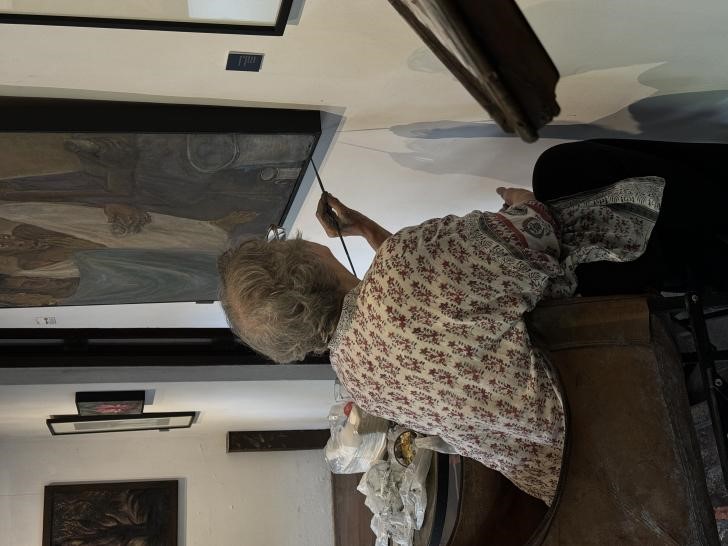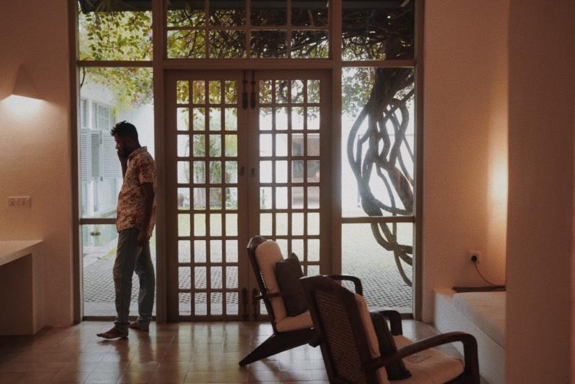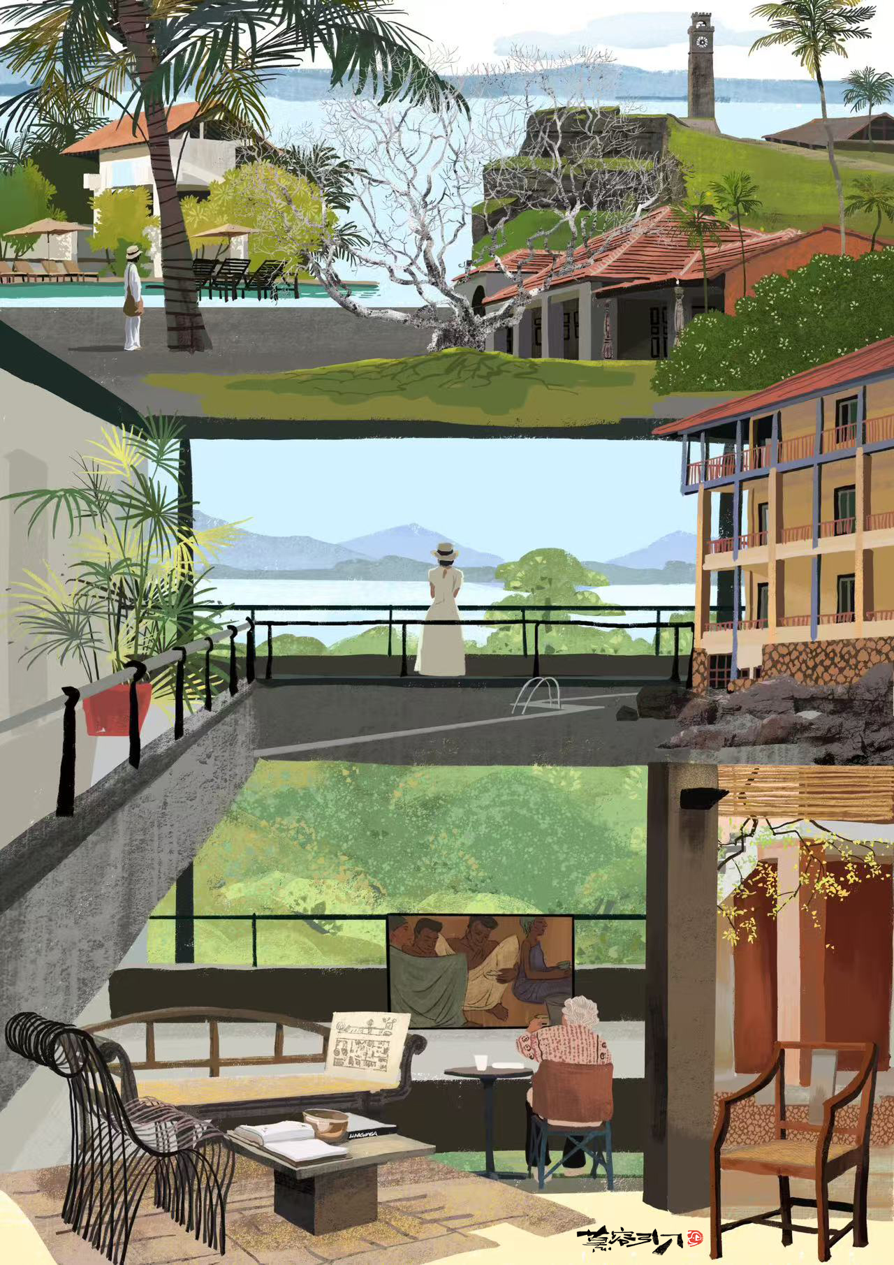 午餐选择了The Gallery café ,巴瓦先生曾经的工作室。我吮吸着冰镇的菠萝汁,坐在如今的中庭看一位年迈的当地艺术家修复画作。她旁若无人,我也绝不打扰,她专注修画,我专注看她修画,光线美得像一个神话。这是不具备通常意义的旅行者时间,却是我个人的优质时间——旅途中为一些计划外的美妙事件停留,享受那些全然陌生的人之间没有界限、自然吸引的时刻——打破界限是巴瓦毕生追求。