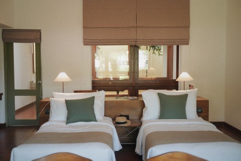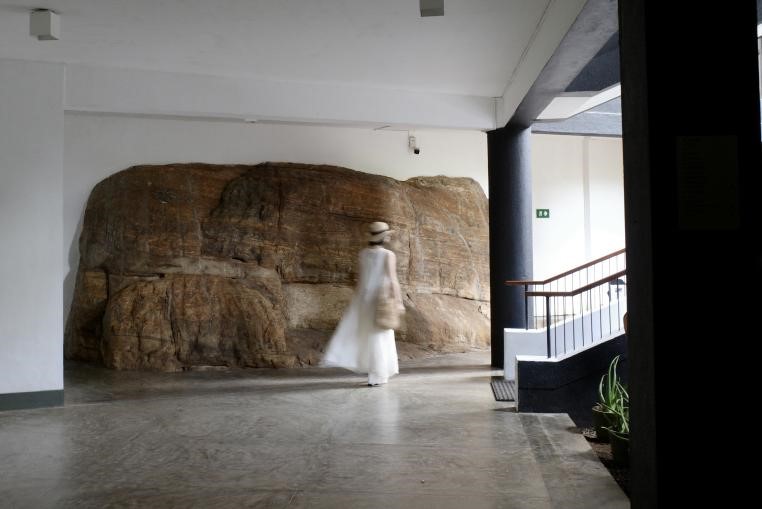 跨年的坎德拉玛遗产酒店异常难定。巴瓦当年为了让建筑从岩壁中“生长”出来,乘直升机在上空盘旋监工的偏执,值得我也偏执一次。之前在研究地图时已经对前往坎德拉玛的路况有了心理准备,实际开下来比想象中只有过之而无不及。看不到尽头的颠簸疾驰,直到远处的地平线出现了沿着岩壁“生长”的建筑群——坎德拉玛, 匍匐在丹布拉岩层中的巨兽,与公元前1世纪的石窟寺形成了超现实的时空对话。