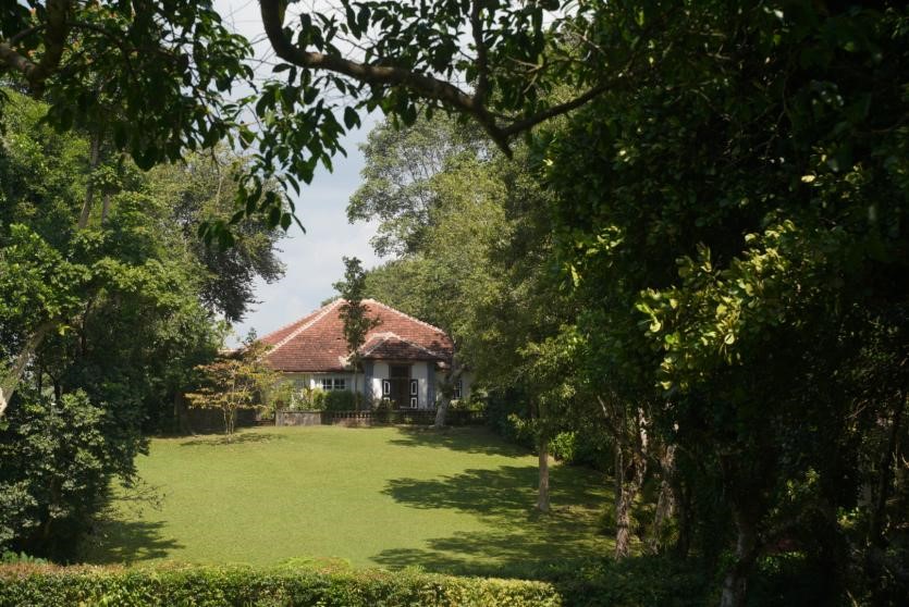 清晨的33街尚未苏醒,巴瓦自宅的白色围墙在三角梅的掩映下显得漫不经心。推门刹那,中庭的雨链正承接昨夜积雨,叮咚声里始建于1958年的建筑群,像被施了空间折叠术的魔盒:殖民风格的柱廊突然转折成僧伽罗传统庭院,混凝土楼板在转角处化作雕花木窗,为狗狗专门设置的座椅突如其来的温柔,冷峻的现代主义中热带植物毫不见外地热烈生长。接待我们的管家说:"巴瓦先生总在早餐时修改图纸,他说建筑应该像茶叶舒展般自然生长。” 旅途中常有泉水溅落在灵台的一瞬,“像茶叶舒展般自然生长”是我在斯里兰卡第一个清晨的泉水。