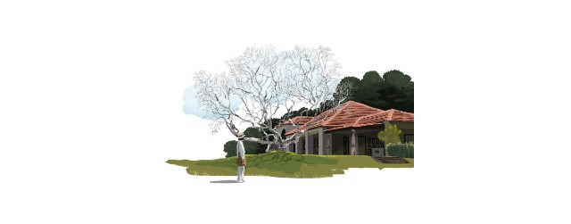 到达Lunuganga Garden的时候已接近晌午,烈日当空,岛上特有的铁木将枝丫的影子刺绣在庄园赭色夯土墙上。在巴瓦历经四十年雕琢的花园中,新古典主义凉亭与野性生长的丛林至今仍在对话。杰弗里·巴瓦的拐杖曾在此处叩击出建筑的原点——这位造梦者把橡胶庄园改造成动态的园林装置,让台阶像脊椎般咬合丘陵的坡度。长期的植物驯化中,柚木与凤凰木在建筑师的纵容下篡改图纸,如今它们的根系已悄然顶起旧时的地砖。