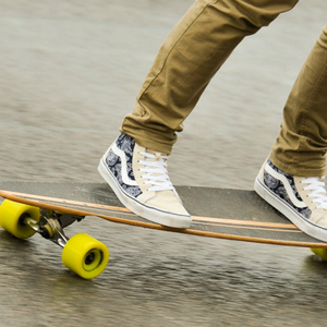 1970年代,加州遭遇罕见旱灾,大量公共场地废弃,经济陷入低谷;而因经济不景气辍学的年轻人,则就地取材玩起了滑板。性能独特的Van Doren板鞋又成为了“滑板男”的最爱,Van Doren公司正式更名为Vans。