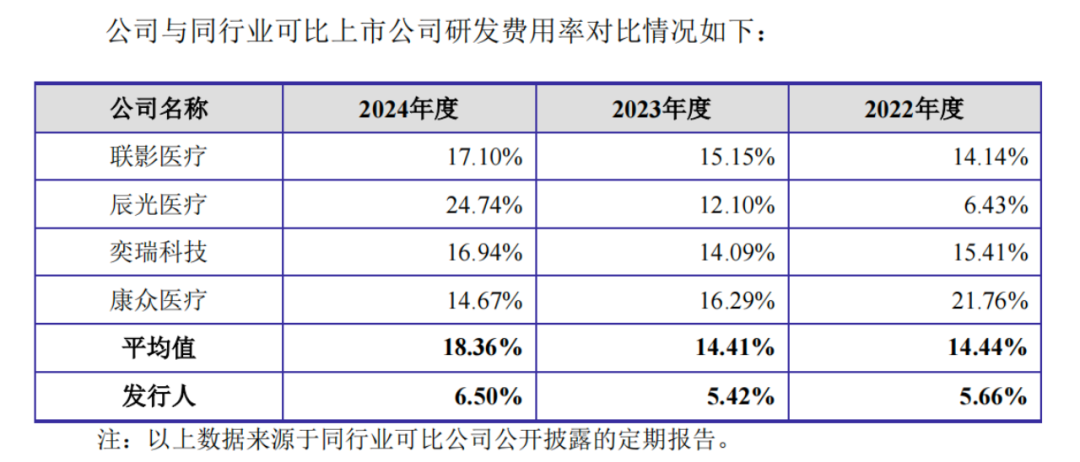 在这背后,健信超导2022年-2024年,研发费用率为5.66%、5.43%、6.5%,仅为行业均值14.44%、14.41%、18.36%的三分之一。