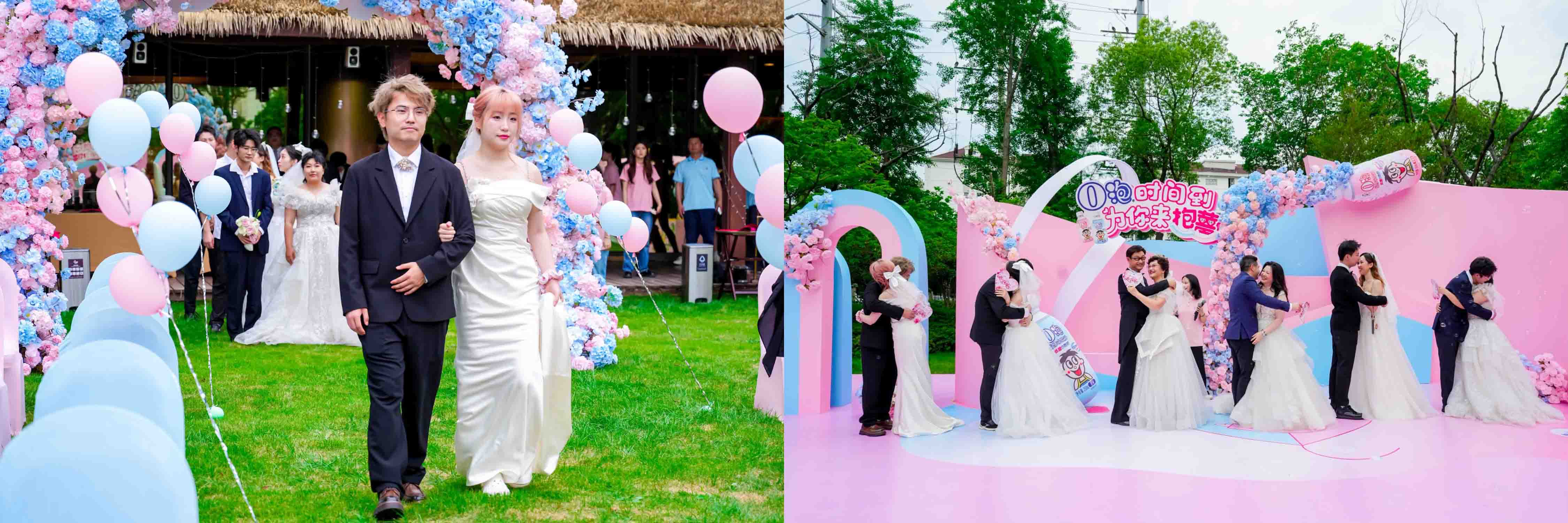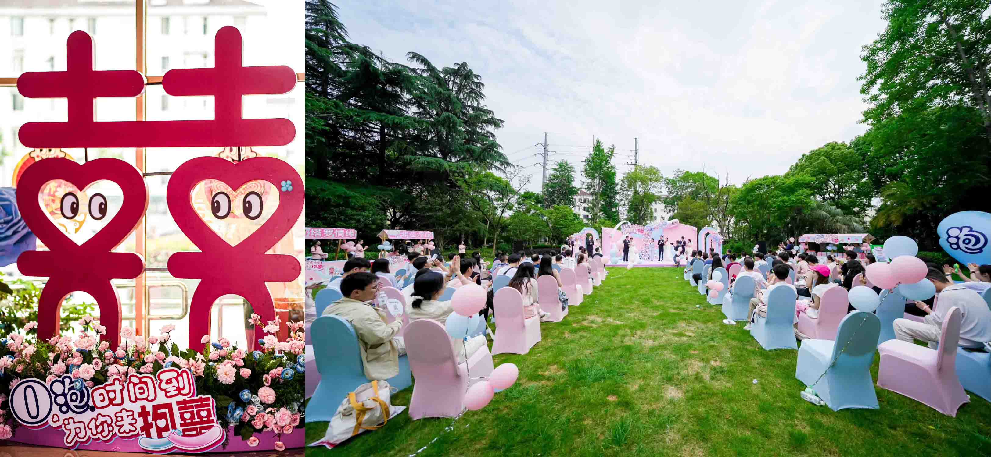 据民政部数据显示,2025年一季度全国结婚登记数同比下降15.9万对,初婚年龄推迟至男性32.1岁、女性30.4岁,经济压力、婚恋观念转变与适婚人口性别比失衡共同构成结婚率低迷的核心症结。在此背景下,旺旺O泡联合上海婚介协会,于2025年5月17日在上海神旺大酒店举办“O泡时间到 为你来抱囍”集体婚礼,以“抱囍”文化为纽带,邀请了多对对金婚、银婚、新婚夫妻共同参与,通过代际传承的温情故事,传递健康积极的婚育价值观。此次活动既是O泡品牌“抱囍”概念的延续,也是政企联动助力婚恋的创新实践。