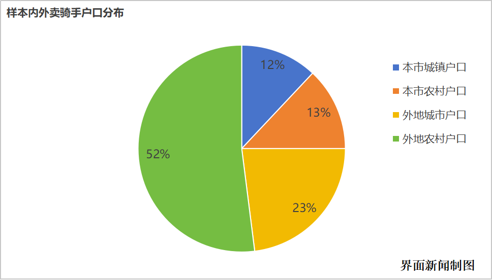 1.外卖行业对流动人口有较强吸引力。在本次样本范围内,外地户口骑手占比达75%。其中,农村户口骑手是主力,占比高达52%。对于他们而言,选择外卖行业的主要考量因素在于该行业提供的时间自由度、相对较高的收入水平以及快速的现金回报。