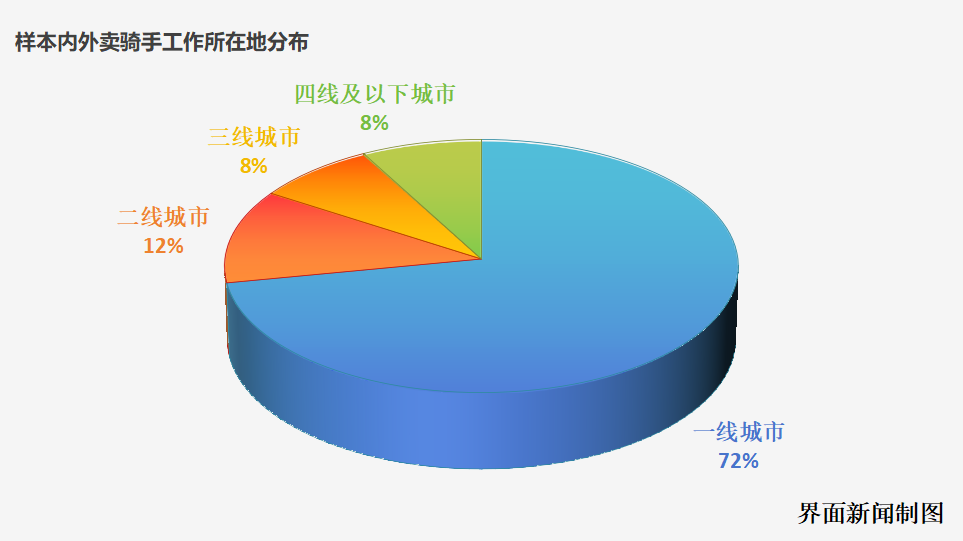 2.大城市是目前就业首选。此次随机样本调研显示,72%的骑手更看重大城市跑外卖的“缺口”需求,以及可能更多的每月到手收入。