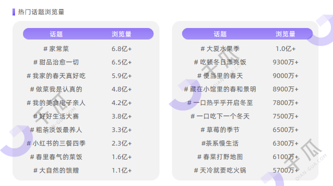 食品饮料行业热门话题浏览量 来源:《千瓜2025小红书活跃用户研究报告》