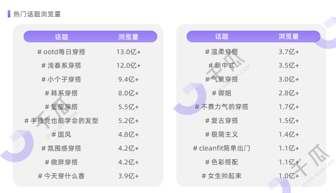服饰穿搭行业人群标签占比、热门话题浏览量 来源:《千瓜2025小红书活跃用户研究报告》