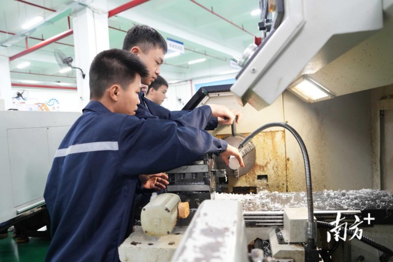 数控技术应用专业2022级学生刘亦洋现在已经敲定了工作。他从去年6月开始,在讯强电子(惠州)有限公司顶岗实习,在校学到的扎实知识与技能,让他到了企业也得心应手。“这里的设备和学校的基本一模一样,学校有些设备甚至还更高级。”刘亦洋说,他在企业从事设备维修方面的工作,每月工资已经从刚入职时的6000多元涨到9000余元。经过双方协议,毕业后,他将继续留在这家企业工作。