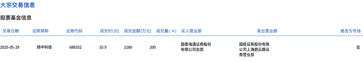 5月29日,颀中科技大宗交易成交200万股,成交额2180万元,占当日总成交额的25.93%,成交价10.9元,较市场收盘价10.9元持平。