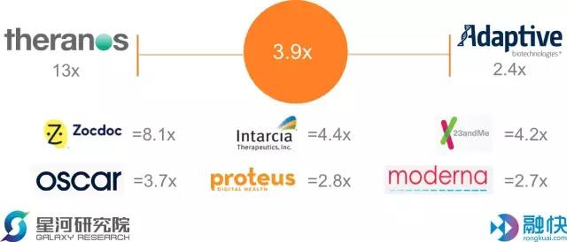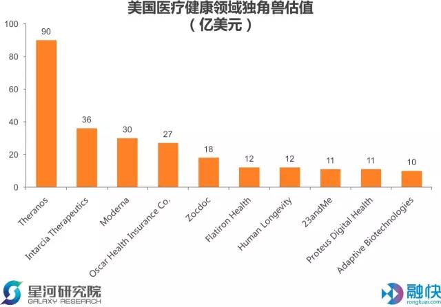 1、医疗和生命科学领域独角兽估值最高的是Theranos,高达90亿,但造假丑闻之后融资基本没有希望。