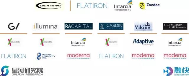 2、医疗和生命科学领域投资独角兽的投资机构多达125家,数量最多的是英国的一家风投机构Baillie Gifford。此外还有16家分别投资了2家独角兽,其中有10家是一些主流VC和大型投行机构,其他6家比较有特色,包括corporate VC:Google Ventures和基因测序设备制造商Illumina,专门投资生物科技的VC:RA Capital, CasdinCapital和Viking Global Investors,还有比尔和梅琳达·盖茨基金会。