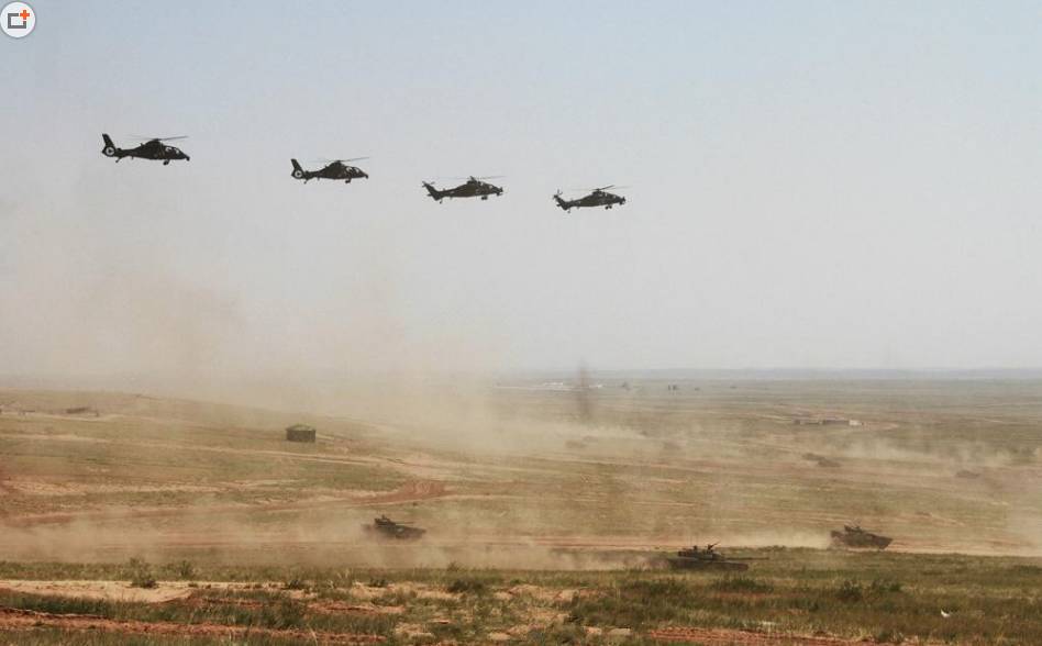 ▲中国装甲突击,武直、坦克、装甲车立体协同