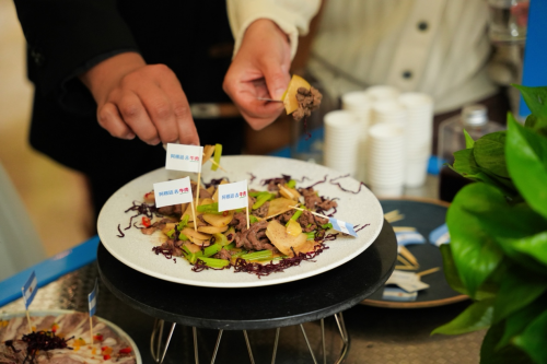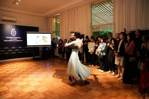 活动现场呈现了一场别开生面的跨文化美食体验。阿根廷著名烤肉厨师以传统技艺现场烹制多款阿根廷风味牛肉,牛肉香气四溢,吸引众多来宾驻足品尝,充分展现阿根廷草饲牛肉的天然风味与卓越品质。同时,中国烹饪名厨胡含先生也在现场倾力演绎三道经典中式菜肴,演示阿根廷牛肉在中餐语境中的多样化应用。这场中阿美食同台亮相的展示,不仅诠释了优质食材的跨文化生命力,更体现了两国人民在饮食文化上的共鸣。不仅如此,专业的探戈舞者大马先生和思萌女士也为现场宾客带来了一段优雅而充满张力的探戈舞表演,将阿根廷文化的热情与韵律诠释得淋漓尽致。