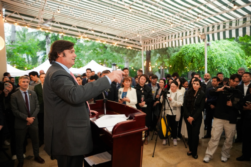 在开幕致辞中,阿根廷驻华大使马致远阁下对各界人士的莅临表示诚挚欢迎并表示:“今天我们共同品鉴的这一珍馐,于我们而言承载着多重深意:她是历史的见证——自阿根廷立国之初,便滋养着这片土地的子民;她是文化的结晶——从牧场培育到烹饪艺术,凝聚着世代相传的智慧与共享的情谊;她是劳动的颂歌——整条产业链上千万劳动者的心血,正铸就着祖国的荣光。”他强调:“中阿两国不仅有着深厚的历史渊源,更在携手擘画未来的篇章。牛肉作为我国对华第二大出口商品,正是我们与中国政府通力合作、共筑粮食安全屏障的重要纽带。”并承诺:“我们将矢志不渝地致力于拓展牛肉市场准入,特别是牛副产品领域,以此彰显阿根廷产品臻至完善的卫生标准。同时,我们将继续携手推进畅通无阻的双边贸易,真正焕发两国经济与生俱来的互补优势。”