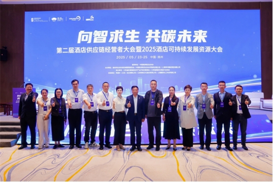 2025年5月23日至25日,金可儿继续受邀出席在扬州举行的“第二届酒店供应链经营者大会暨2025酒店可持续发展资源大会”。本次大会以“向智求生 共碳未来”为主题,汇聚来自全国各省市协会代表及数百位酒店与供应链企业代表,聚焦ESG、智能化、绿色低碳等议题,推动行业供应链向可持续方向协同升级。