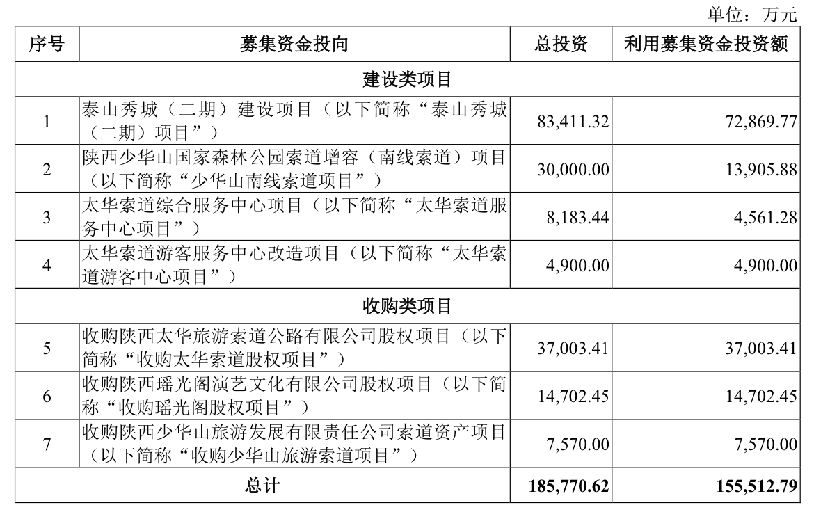 此次,陕西旅游计划募资15.55亿元,投入7个项目中,包括建设类4个和收购类3个。其中最引人注意的,便是拟投入7.29亿元的“泰山秀城(二期)项目”。