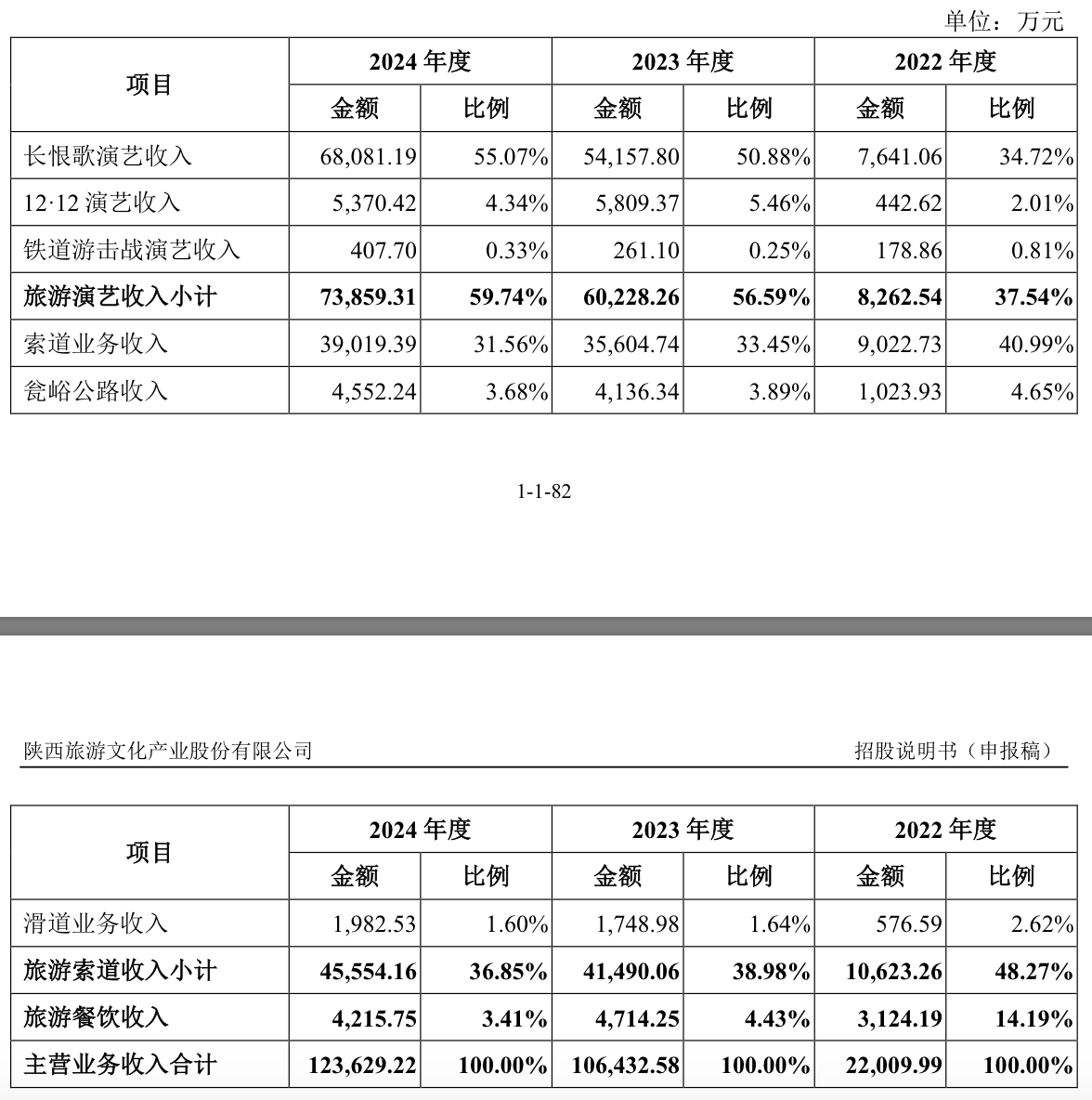 界面新闻注意到,根据招股说明书释义,“泰山秀城(一期)项目”即“泰安秀都演艺中心(一期)项目”,曾是首次IPO的募投计划之一,当时公司拟投额5.5亿元。可见首次IPO虽无功而返,但陕西旅游也未搁置募投计划,完成了一期。