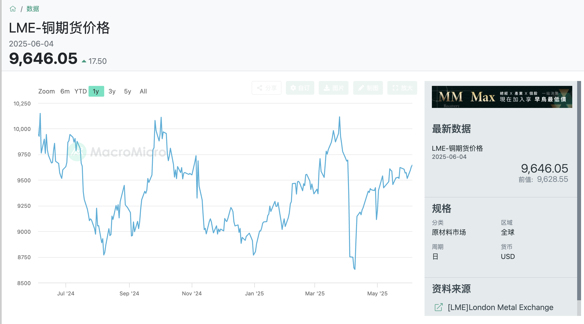 2025年初以来,铜价呈震荡走势。一方面,美国宣布对铜进口进行调查,这使得市场预期美国进口铜的成本将增加。另一方面,美国于今年4月宣布征收关税后,市场对全球经济放缓的担忧加剧,铜价下跌,后又因关税政策调整,铜价回升。