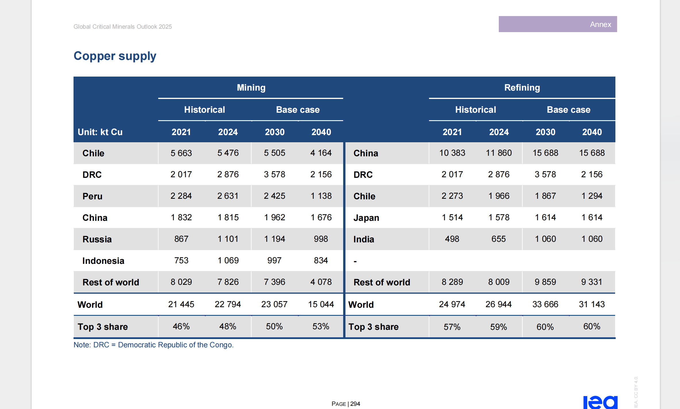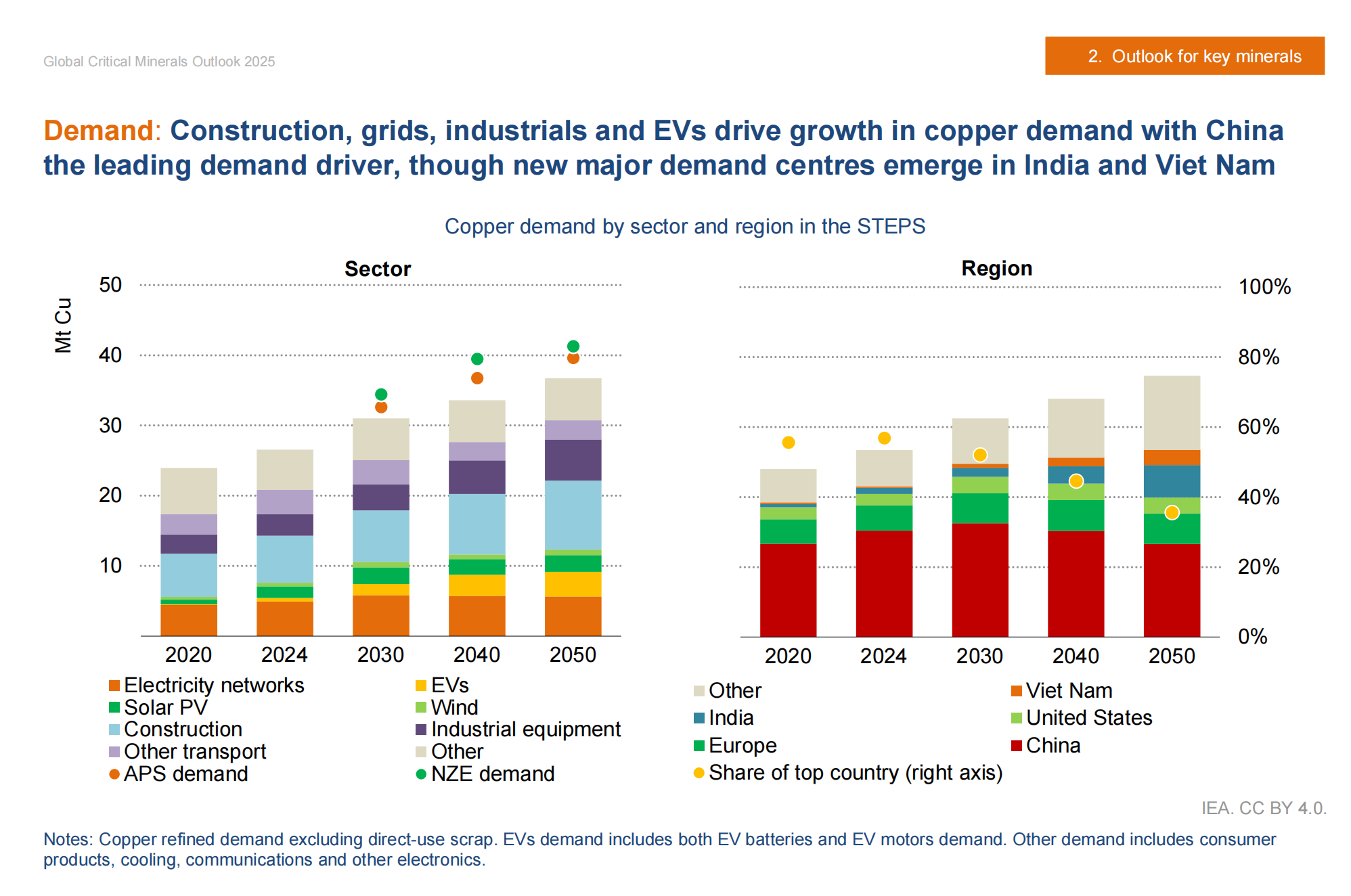 IEA表示,印度迅速超越美国,成为全球第三大精炼铜需求国,预计到2050年,其在全球精炼铜需求中的份额将超过10%,而2024年这一比例仅为3%。