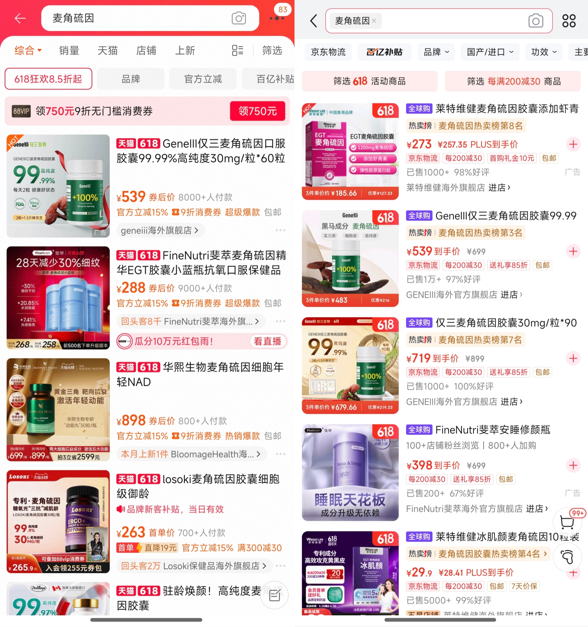 目前,在电商以“麦角硫因”为关键词搜索,可以搜索到大量以麦角硫因为卖点的产品。不过,受政策限制,这些产品也大多通过跨境电商的方式在国内销售。