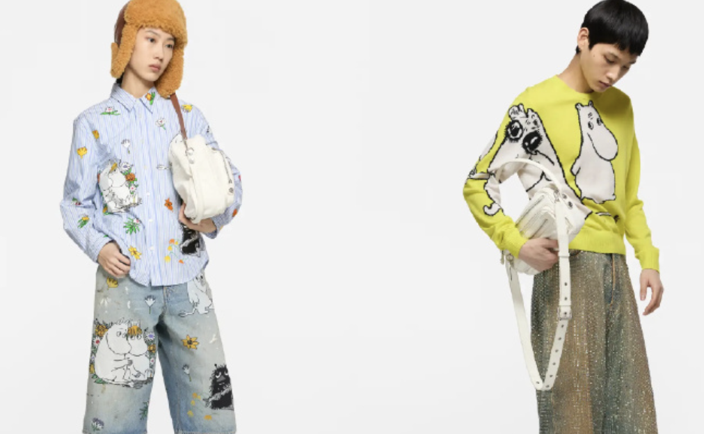 该系列巧妙融合姆明世界的俏皮笔触,涵盖针织、牛仔、棉质休闲单品及配饰。小美、哥妮、史丁奇和树精等经典角色以印花与贴画形式亮相,点缀于Acne Studios标志性1981宽松版型牛仔裤、条纹衬衫、亮色T恤与舒适的针织毛衣单品以及棒球帽上。(WWD)