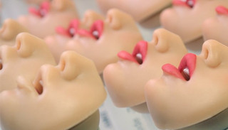 Shore带我参观了整个工厂,在地下室的天花板上悬挂着一长排没有安装头部的性爱娃娃,显得有些阴森恐怖;每个娃娃的外表和体型都不太一样,有的有着卡通片里那种巨大的胸部;有的有着运动员的体魄;不过她们的细腰都是相同的。她们的皮肤是用一种医用硅胶材料制作的,上面甚至还看得到血管。有一名技术员正在小心地刮下娃娃手上的多余材料,另一个人则在组装娃娃的钢铁骨架,还有一人在向模子里浇注硅胶。对这里的工作人员来说,玩偶没有什么吓人的,也没有什么让人兴奋的:还有人将手机放在阴唇旁边。